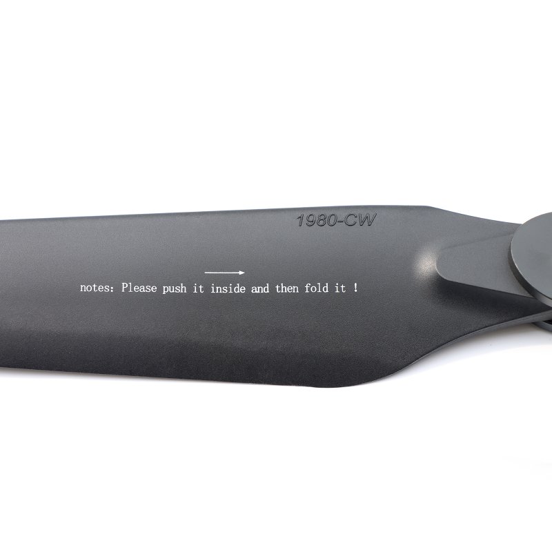 1980 碳塑折叠桨采用先进的碳纤维增强聚合物材质精心打造,拥有出色的强度与韧性,桨叶坚固轻盈,抗冲击性能拉满,高效的气动效率降低了电机负载,减少电能损耗,续航时间更久,重塑飞行体验。